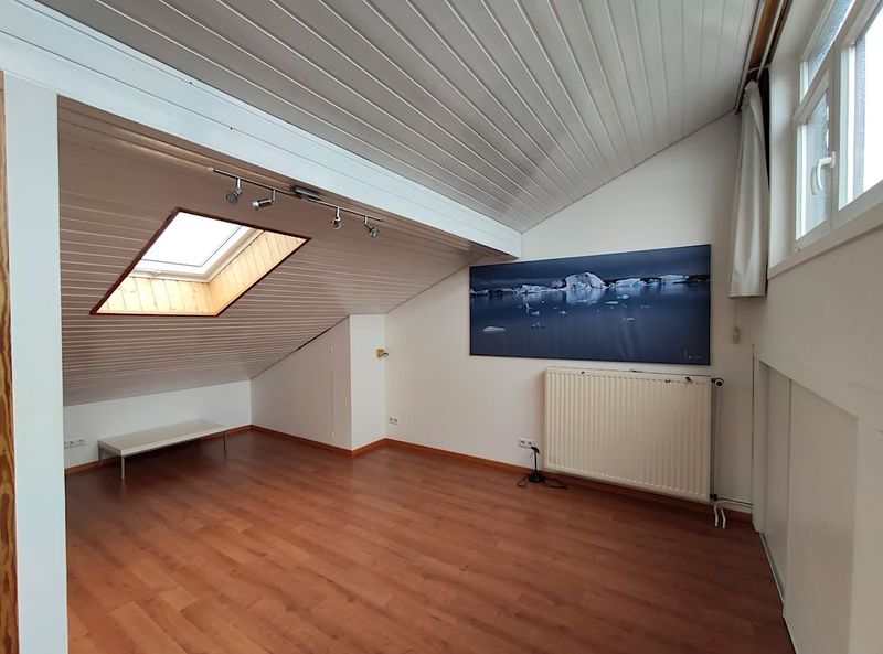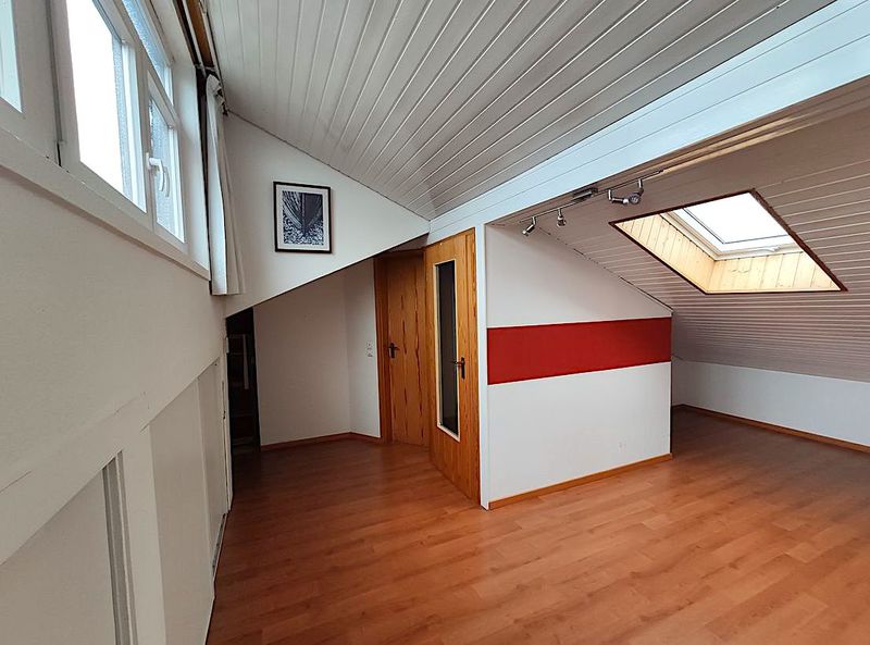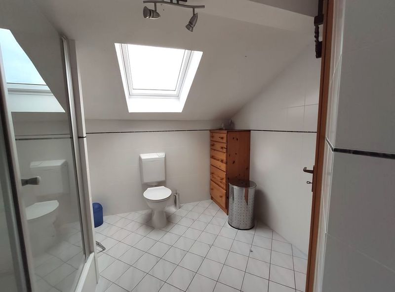 - das DG hat einen senkrechten Fensterausbau über die gesamte Breite plus ein VELUX-Dachfenster mit elektrischem Rolladen (neu) plus ein Velux-Dachfenster im Badezimmer
