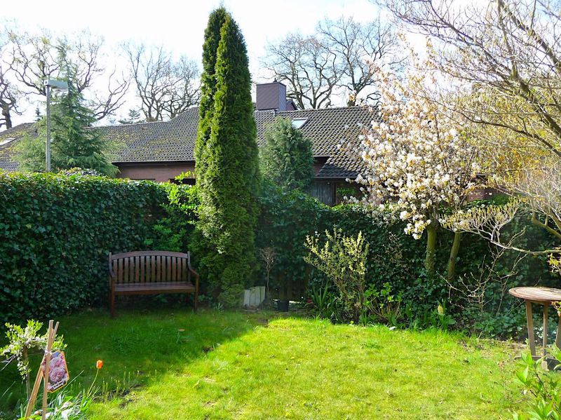 Ein besonderes Highlight ist der schön eingewachsene Garten. Auf der geräumigen Terrasse kann man sich zu jeder Tageszeit wunderbar vom Alltag erholen und entspannen.